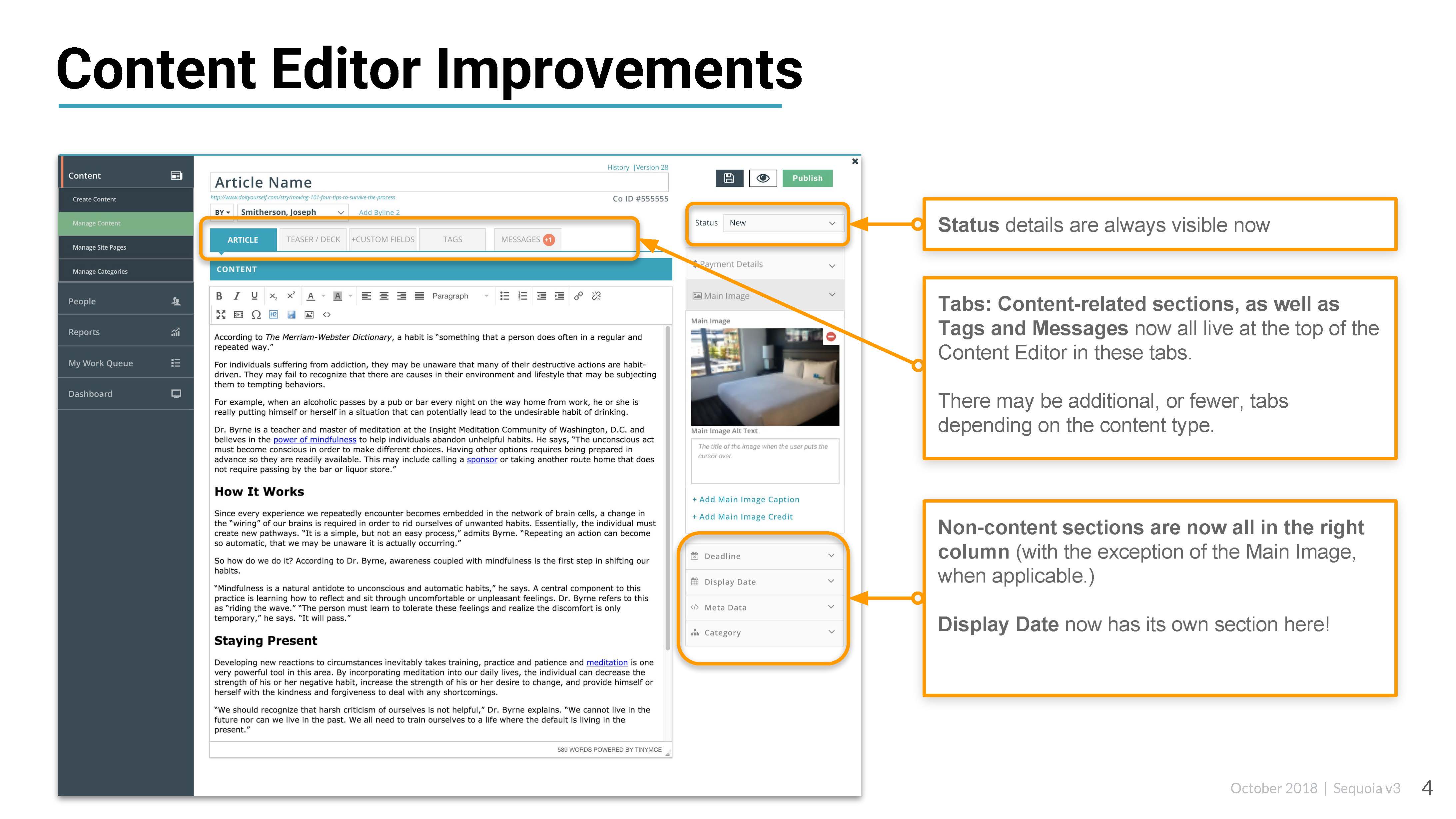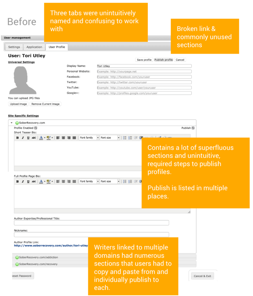 Due to unnecessary modules and features cluttering the application and unintuitive and complex overall design, articles were left unpublished, employees struggled to get their work done so often that many teams chose to work in external content management systems, and many new employees were only trained in singular modules to avoid a lengthy and complicated Sequoia training processes.