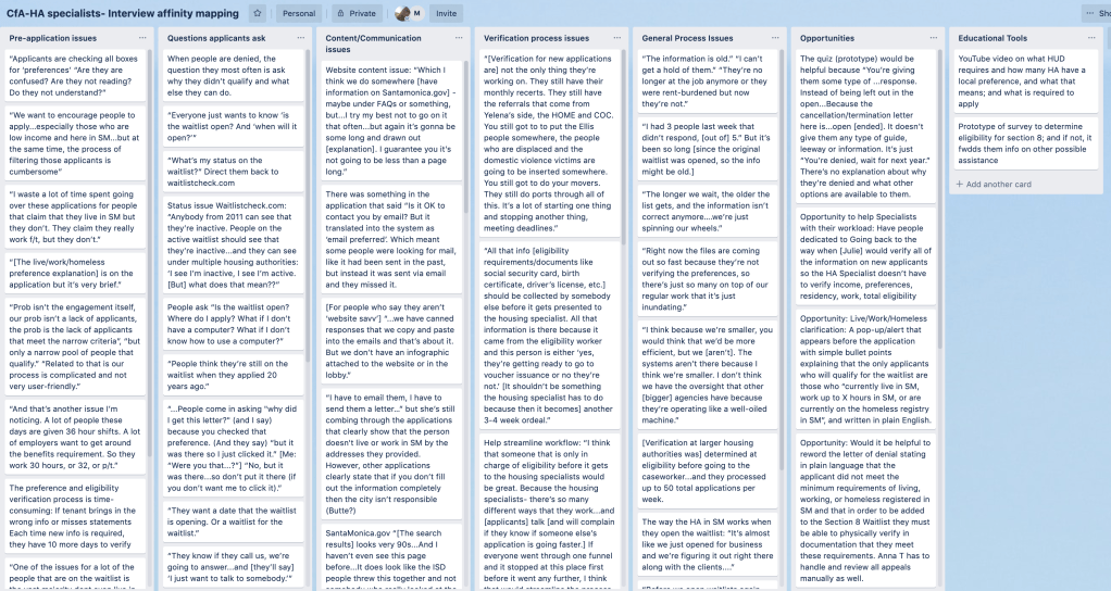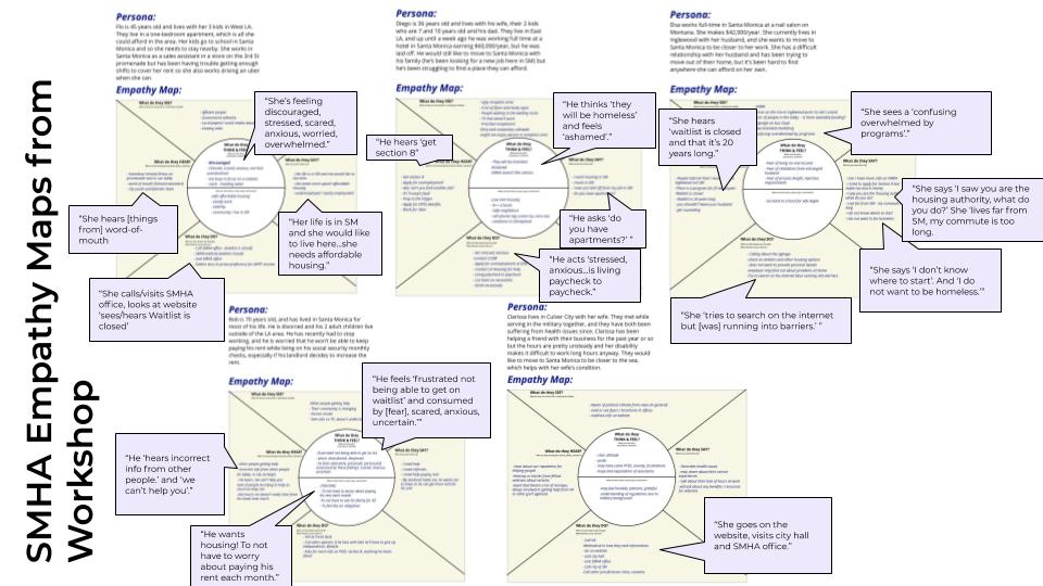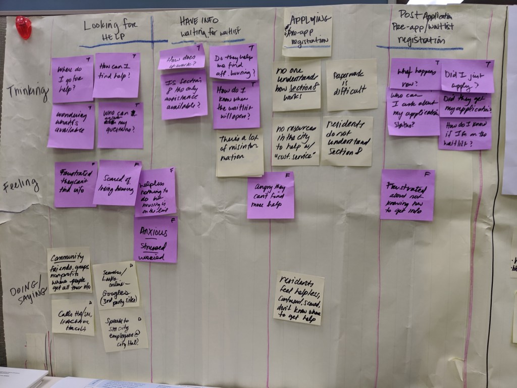 In the beginning I went head-down into the interviews and secondary online research. SMHA’s manager was easy to work with but I could see that the recommendations and insights weren’t that easy to digest in our weekly meetings. No one at the housing authority had worked with a UX Designer or Researcher before and did not understand what I did.