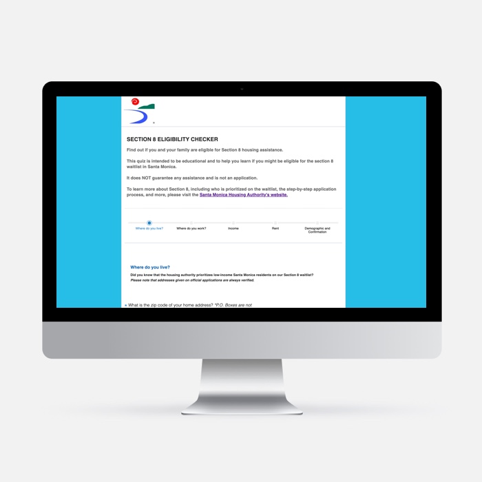 I proposed, designed, and developed both the website and Section 8 Eligibility Quiz.