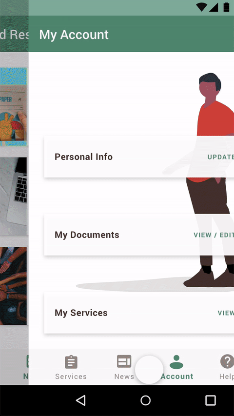 The Adobe Creative Jam kicked off Thursday morning and the deadline was Sunday at 1pm. Our group was formed the week of the event and we didn’t have time to work on Thursday at all. We brainstormed the overall app navigation and features together and then split up the screens, diverging to sketch, and getting back together during the prototyping process. I forged ahead with research and a persona. I designed and prototyped the News, Profile, and Help screens.