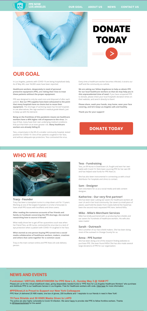 PPENowLA.com was started by a nurse who noticed that hers and her colleagues hospitals were severely lacking in PPE. A friend of mine volunteered to host their site on Wix and requested help with copy editing. I lent my services for both the site and letters requesting support, as well as making recommendations for section content and labels. The first image includes my recommendations, the website shows the final edits to the top two sections, and the right image is a screenshot of the site as it was first presented.